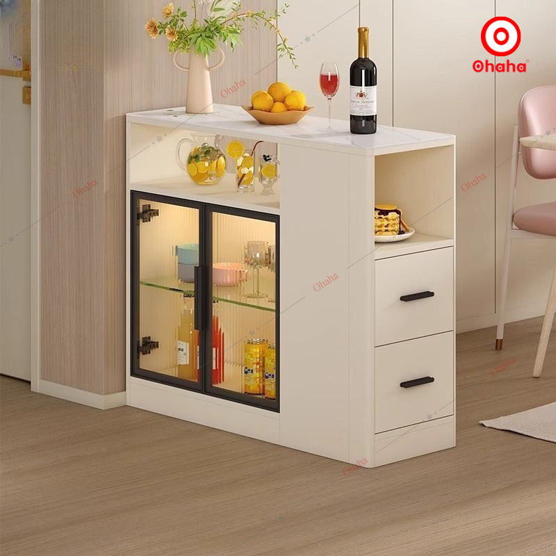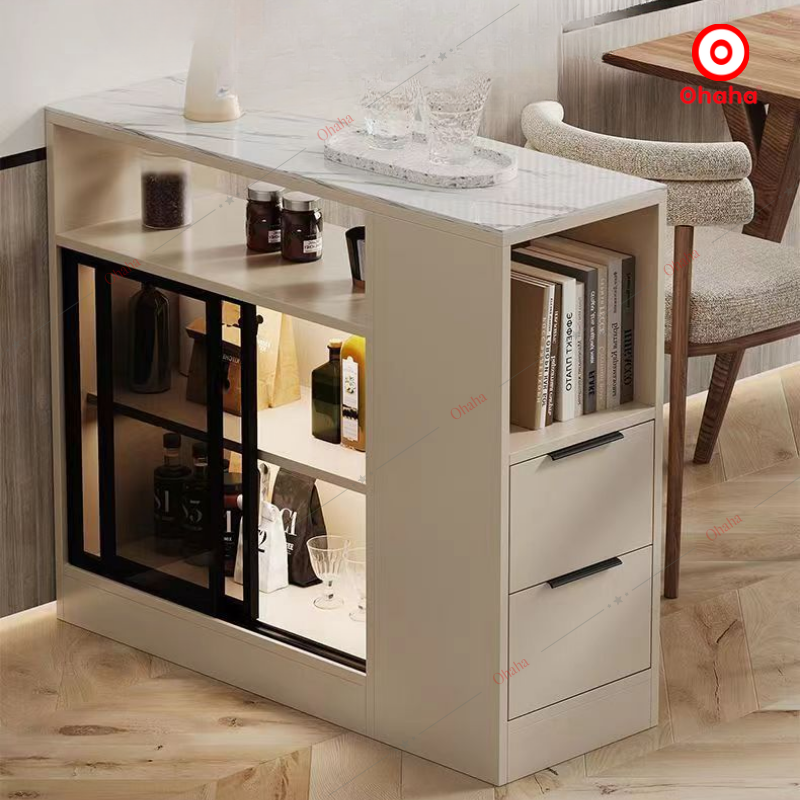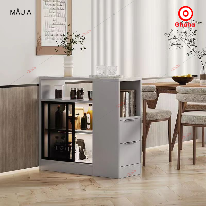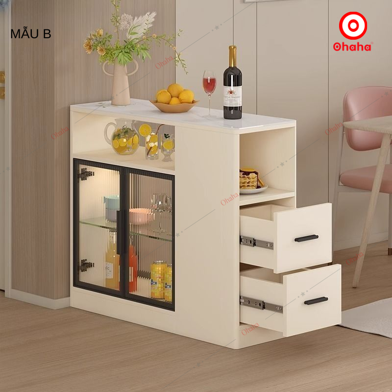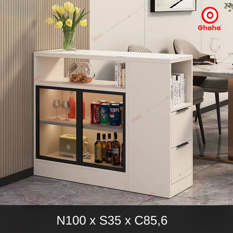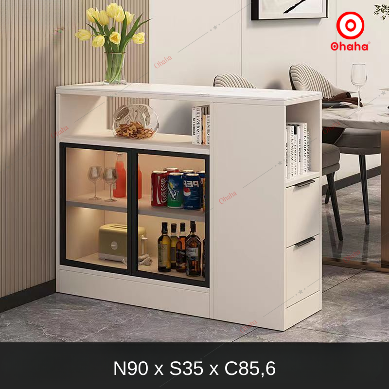 Bàn đa năng Ohaha - BDN006 phong cách sáng tạo hiện đại, sản phẩm được thiết kế hộc để đồ phía dưới và có tủ kính trựng bày. Bàn đa năng được làm từ chất liệu gỗ MDF lõi xanh phủ Melamine 2 mặt chống ẩm