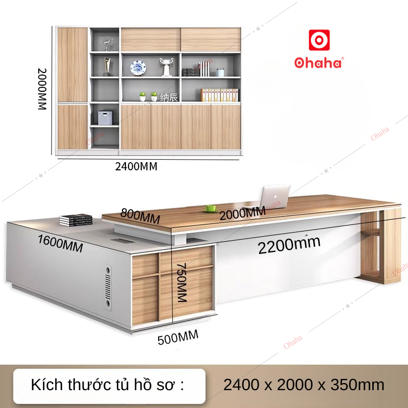 Trọn bộ gồm bàn giám đốc cao cấp và tủ hồ sơ Ohaha - BGD009