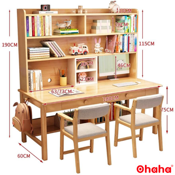 Bàn Học Đôi Có Kệ Sách Cho Bé OHAHA - BH001 được thiết kế tại sự thoải mái cho hai trẻ ngồi học tập. Giá sách liền bàn nhiều ngăn giúp tăng không gian lưu trữ. Một thiết kế đầy ấn tượng dành cho những gia đình có 2 bé đang trong độ tuổi đến trường.
