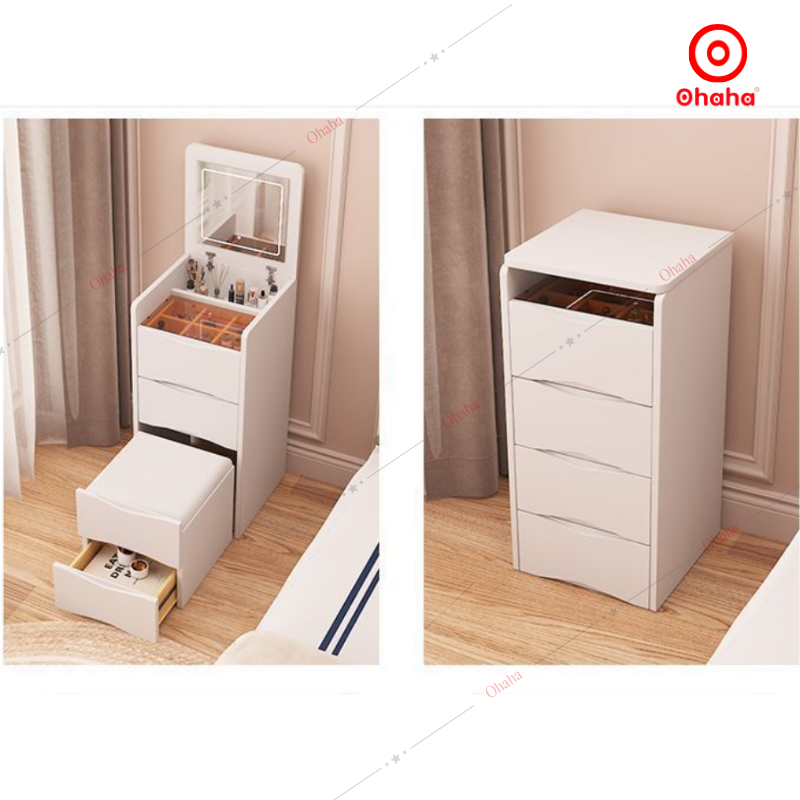 Bàn trang điểm được thiết kế phù hợp với không gian nhỏ. Tô điểm màu sắc tự nhiên tươi sáng, trẻ trung, không chỉ giúp làm đẹp mà còn góp phần tô điểm cho không gian sống thêm sinh động, ấn tượng và dưạ vào nhu cầu và thói quen của ngươi tiêu dùng, sản phẩm được thiết kế thông minh.