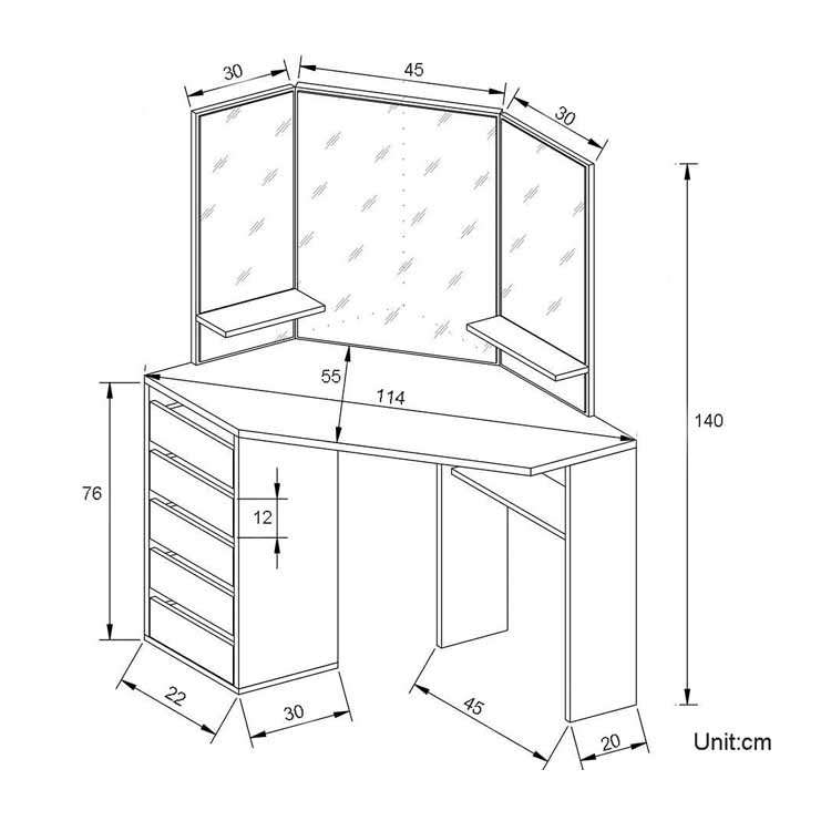 + Bàn trang điểm được thiết kế phù hợp với những căn phòng chật hẹp hay muốn tiết kiệm không gian. Nguyên liệu MDF loại 1 cao cấp đạt tiêu chuẩn E1 nhập khẩu Singapore được phủ Melamine chống thấm, an toàn cho sức khỏe gia đình.