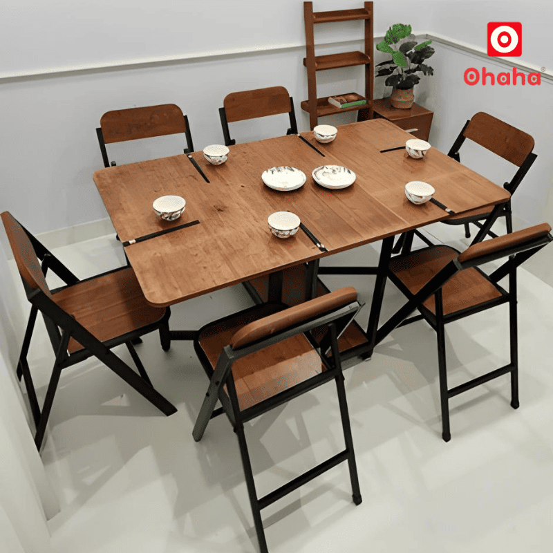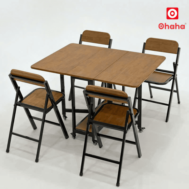 + Bộ bàn ăn thông minh xếp gọn đa năng có ghế và bánh xe Ohaha - BA013 được thiết kế dùng được cho gia đình 4-6 người lớn với tính năng gấp gọn và tháo lắp dễ dàng, với kích cỡ vừa phải có thể thu gọn sau khi sử dụng và có thể đặt khắp nơi trong nhà giúp bạn tận dụng không gian một cách hiệu quả. Khi không sử dụng, bạn có thể gấp gọn bàn lại để tiết kiệm diện tích trong căn bếp. Điều này đặc biệt hữu ích cho những căn bếp nhỏ, căn hộ chung cư, hay những ngôi nhà có không gian hạn chế.