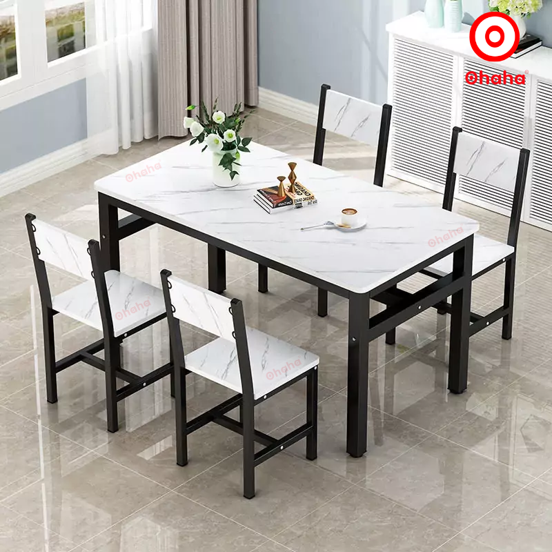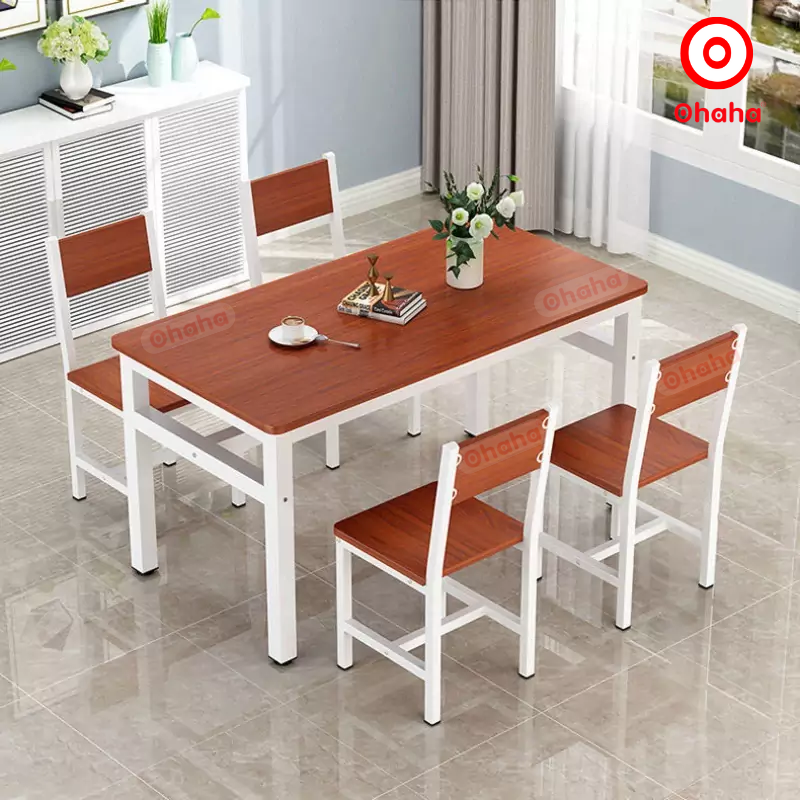 + Bộ bàn ăn đa năng có ghế Ohaha - BA014 được thiết kế dùng được cho gia đình 4-6 người lớn với phần khung sắt chắc chắn và phần mặt bàn là MDF lõi xanh được phủ melamine chống thấm.
