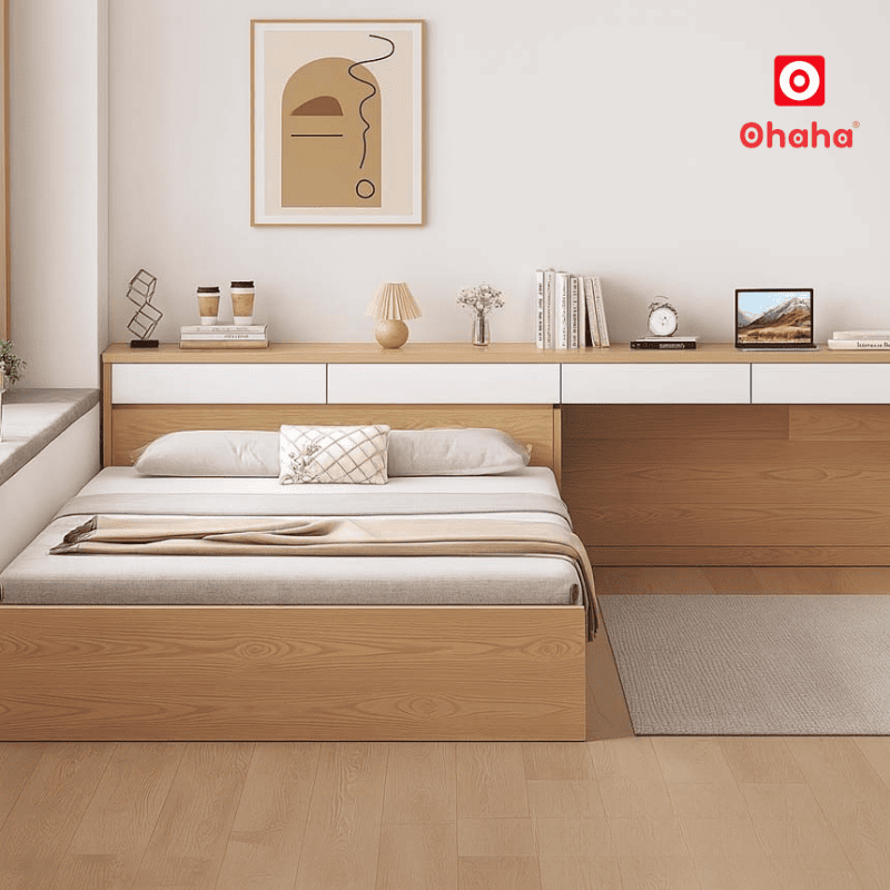 Giường ngủ gỗ thông minh OHAHA - GC063 làm từ gỗ công nghiệp cao cấp, thiết kế thông minh tích hợp ngăn kéo tiện lợi, giúp tối ưu không gian sống. Phù hợp cho căn hộ chung cư, phòng ngủ nhỏ, mang lại sự gọn gàng và thẩm mỹ tinh tế.