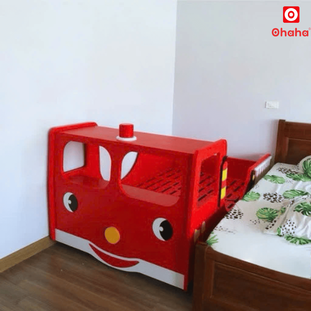 Giường ngủ hiện đại hình xe cứu hỏa cho bé Ohaha - GTE004 có kiểu dáng nhỏ gọn phù hợp với vóc dáng của trẻ, tiết kiệm diện tích sử dụng. Các góc cạnh của sản phẩm đều được bo tròn, dán chỉ cẩn thận để không làm tổn thương bé trong quá trình sử dụng.