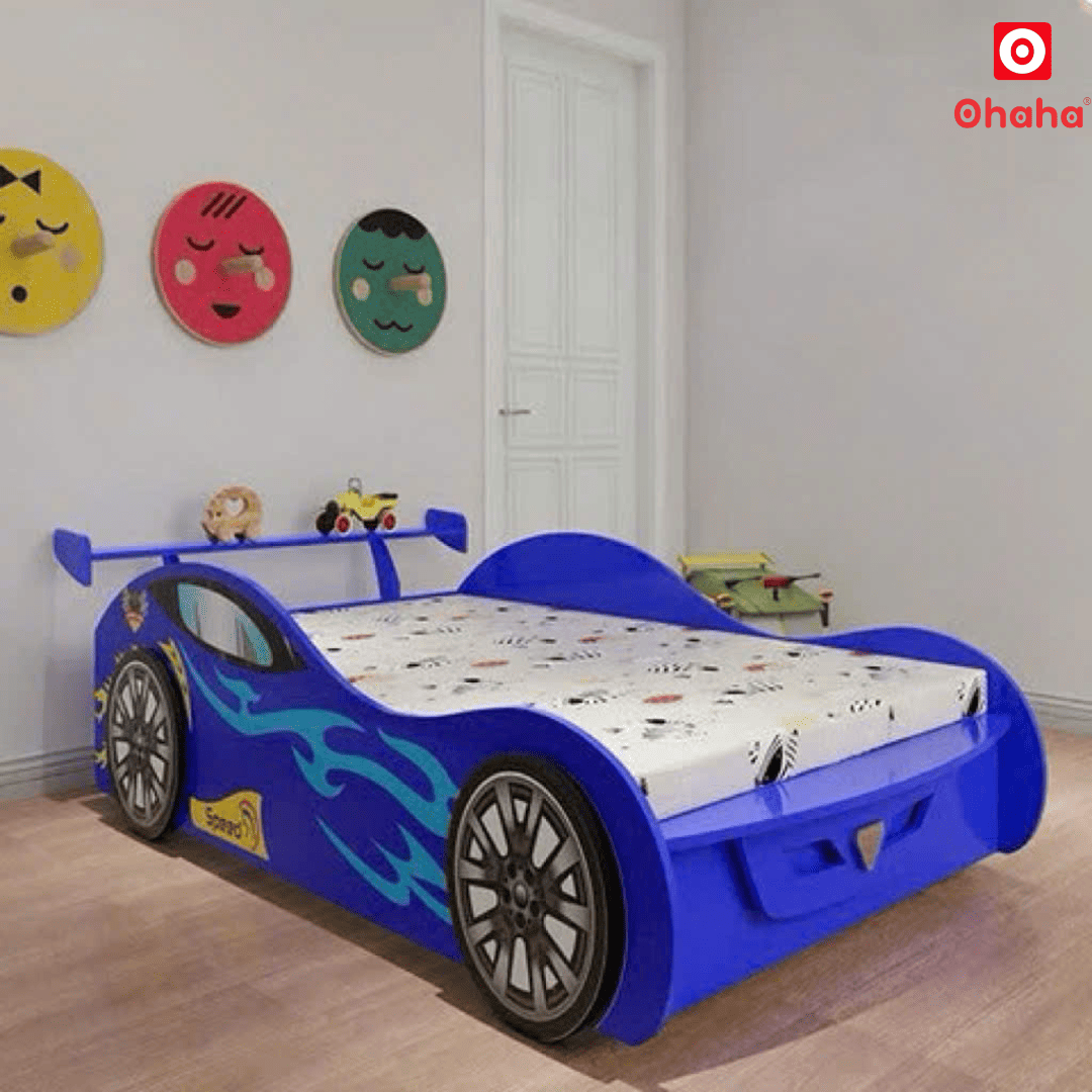 Giường ngủ hiện đại hình xe hơi cho bé Ohaha - GTE001 có kiểu dáng nhỏ gọn phù hợp với vóc dáng của trẻ, tiết kiệm diện tích sử dụng. Các góc cạnh của sản phẩm đều được bo tròn, dán chỉ cẩn thận để không làm tổn thương bé trong quá trình sử dụng.
