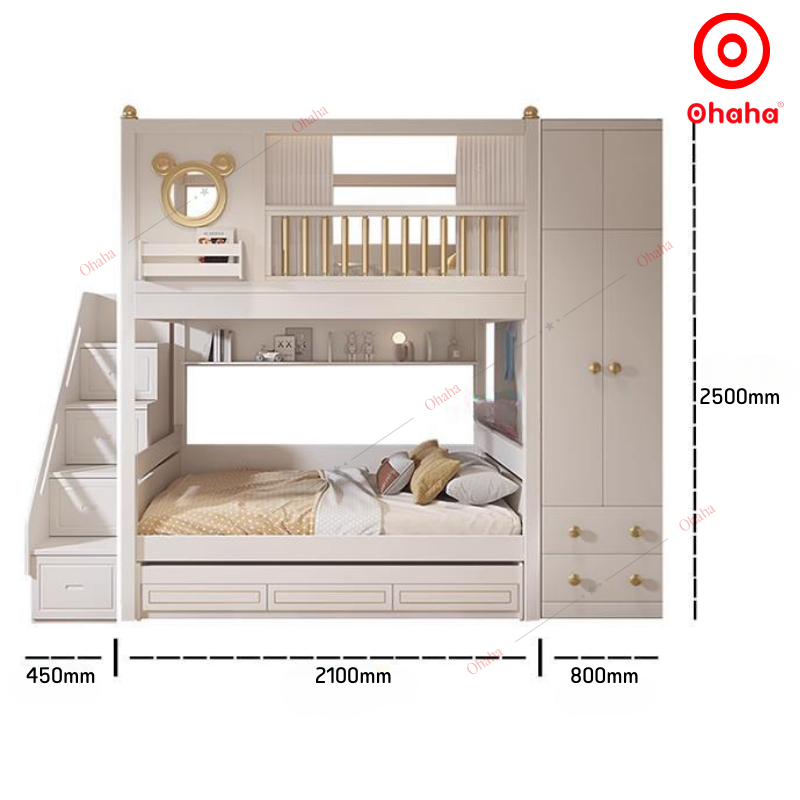 Giường tầng thông minh cao cấp 3 tầng Ohaha có tủ áo - GTCC027