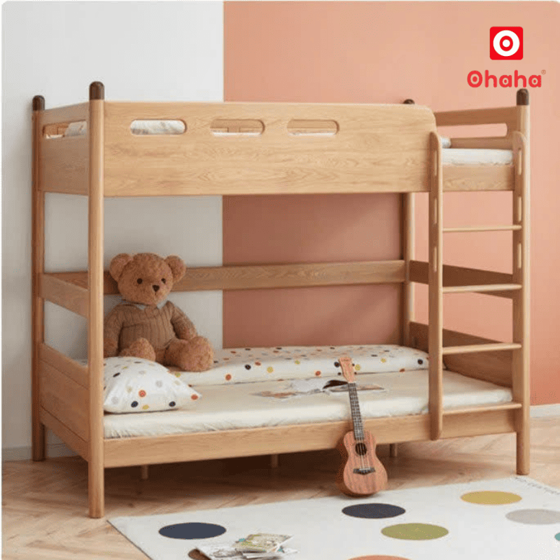 Giường tầng gỗ ASH phủ veneer - chất liệu an toàn, thân thiện với môi trường.