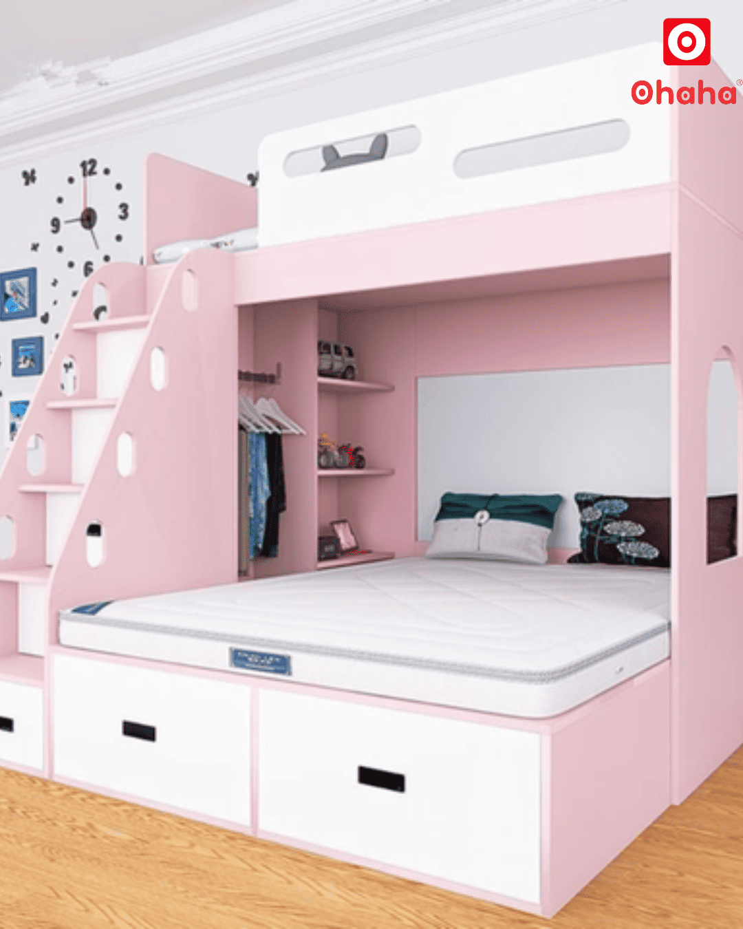 Giường tầng thông minh đa năng Ohaha - GTĐN029 màu hồng pastel cho bé gái