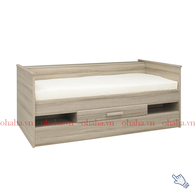 + Hộc chứa quần áo, đồ dùng cá nhân được tích hợp bên dưới giường 1 hộc nên rất gọn gàng, tiện dụng, giúp các Bé rèn luyện tính ngăn nắp.