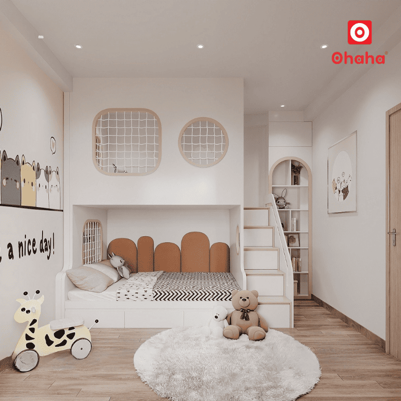 Thiết kế giường tầng thông minh hiện đại giúp phòng ngủ không chỉ là nơi nghỉ ngơi mà còn là không gian để bé học tập và vui chơi.