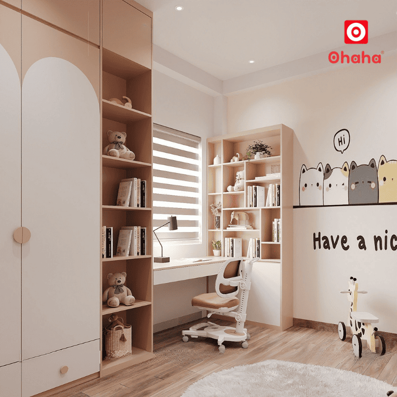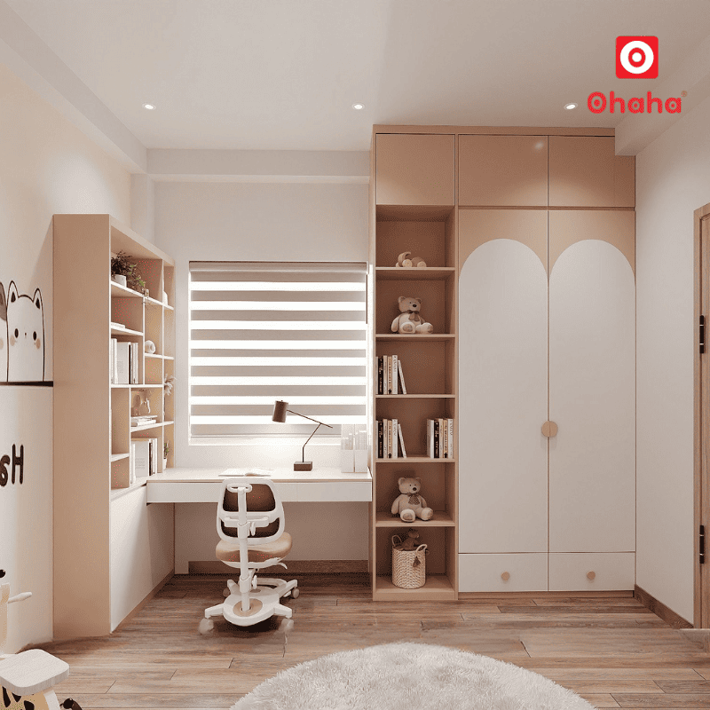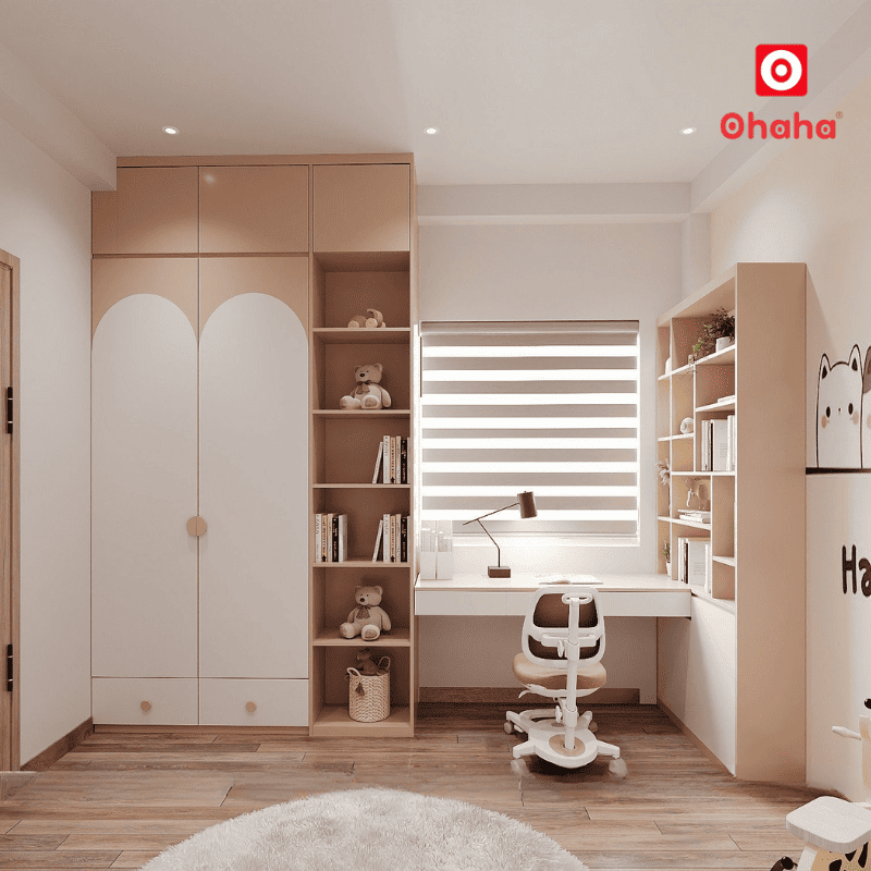 Nhờ thiết kế thông minh, căn phòng của bé luôn thông thoáng, ngăn nắp và tiện nghi.