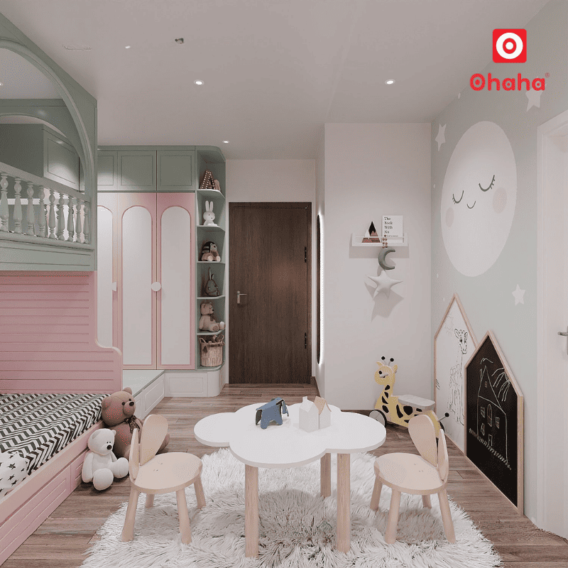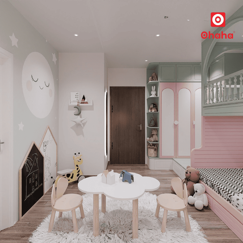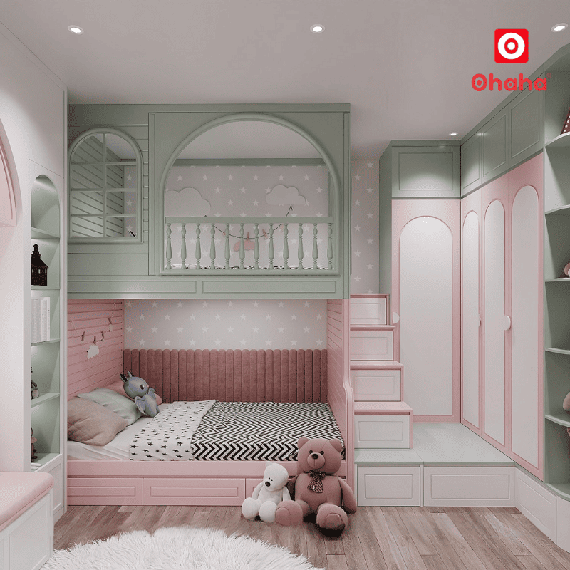 Combo phòng ngủ đẹp cho bé với giường tầng thông minh Ohaha – GTTM072
