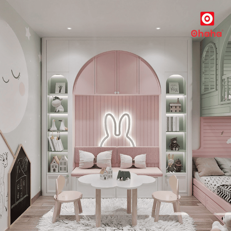 Sự đồng nhất về màu sắc và phong cách giúp phòng bé gái trở nên gọn gàng, xinh xắn và có chiều sâu hơn, tránh cảm giác rời rạc khi mua nội thất riêng lẻ.