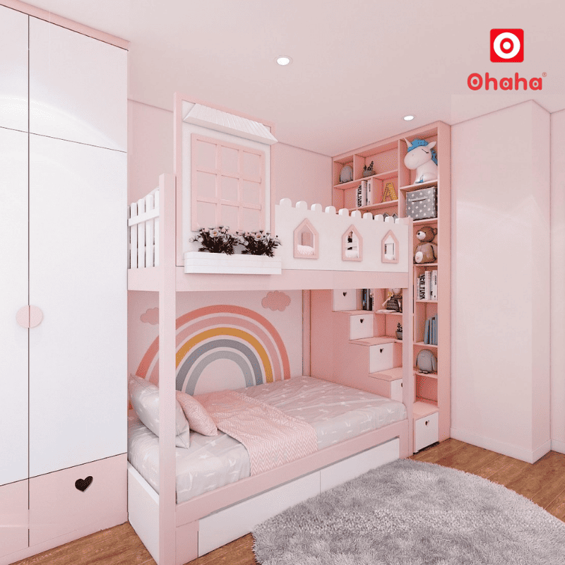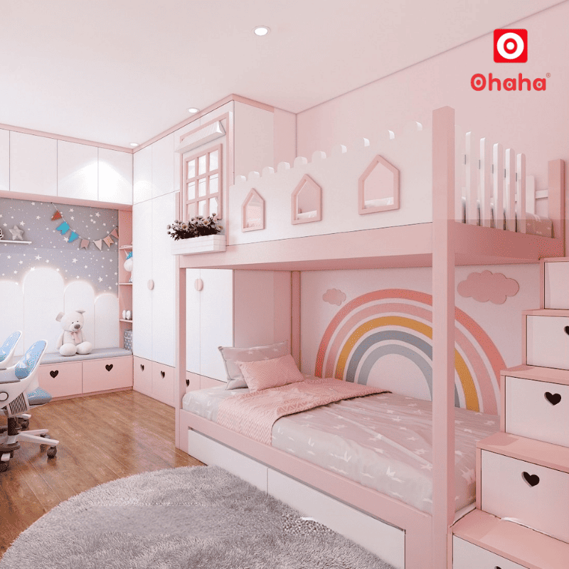 Combo phòng ngủ đẹp cho bé gái với giường tầng thông minh hiện đại Ohaha – GTTM075