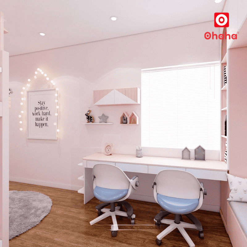 Sự đồng nhất về màu sắc và phong cách giúp phòng bé gái trở nên gọn gàng, xinh xắn và có chiều sâu hơn, tránh cảm giác rời rạc khi mua nội thất riêng lẻ.