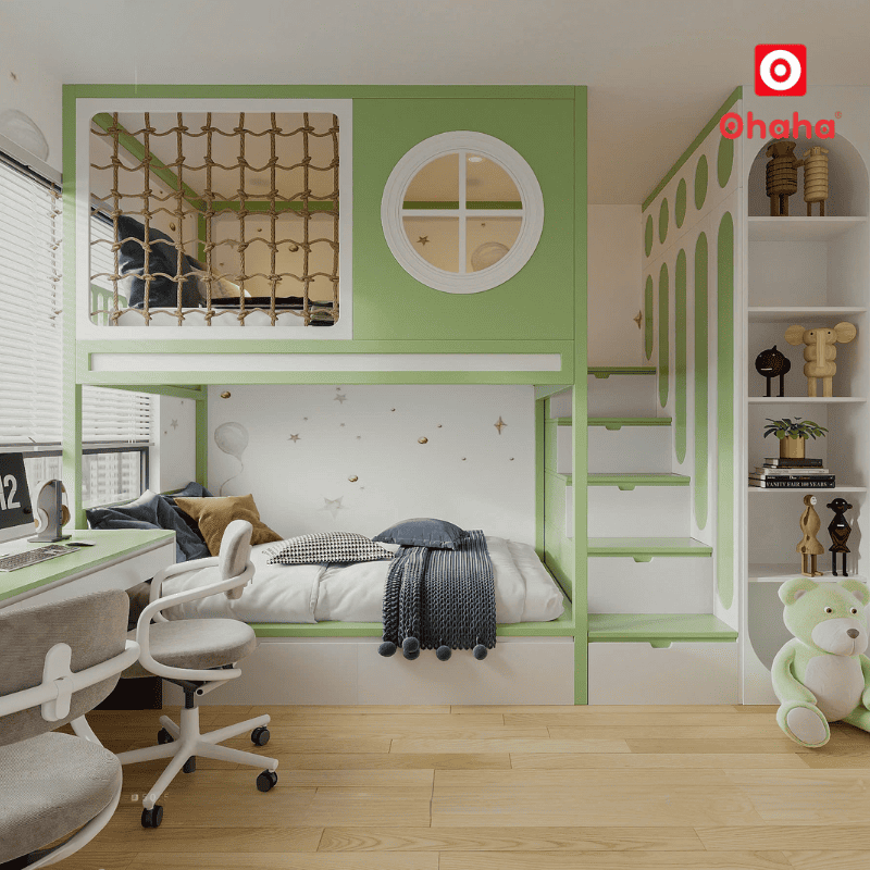 Giường tầng thông minh đang trở thành xu hướng nội thất được nhiều gia đình lựa chọn cho phòng trẻ em, đặc biệt là những không gian có diện tích vừa và nhỏ. Nổi bật trong các mẫu mới hiện nay, Giường tầng thông minh Ohaha – GTTM076 ghi điểm nhờ thiết kế tinh tế, màu sắc nhẹ nhàng và khả năng tối ưu không gian vượt trội, rất phù hợp với phòng bé trai.