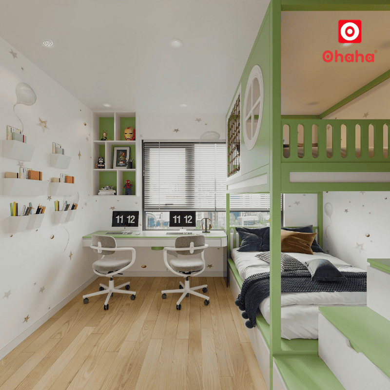 Phù hợp cho gia đình có 2 bé hoặc muốn tối ưu không gian phòng ngủ
