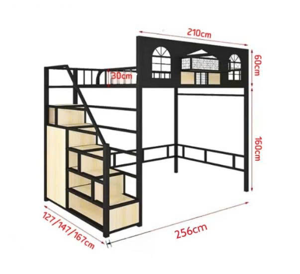 Mẫu giường tầng sắt - GTS002 được thiết kế đầy đủ tủ đồ, các ngăn kệ chứa đồ. Sản phẩm là sự kết hợp giữa sắt sơn tĩnh điện và MDF lõi xanh chống ẩm phủ Melamine 2 mặt.