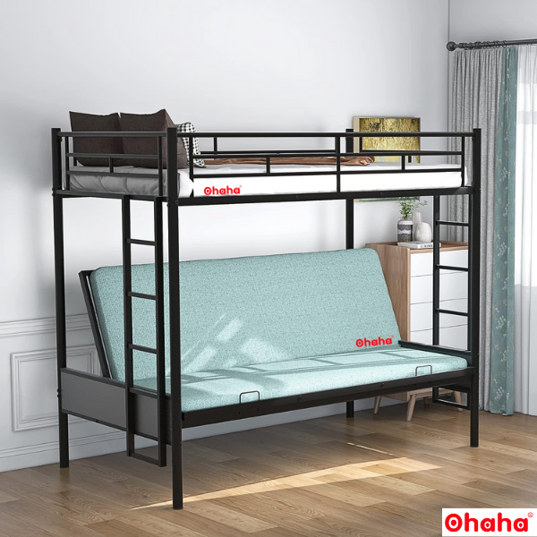 Giường tầng thông minh khung sắt Ohaha - GTS020 được thiết kế tiện dụng, tiết kiệm diện tích và chắc chắn, an toàn cho cả người lớn và trẻ nhỏ khi nằm. Đây là sự lựa chọn ưu việt cho không gian nội thất phòng ngủ nhỏ hẹp.