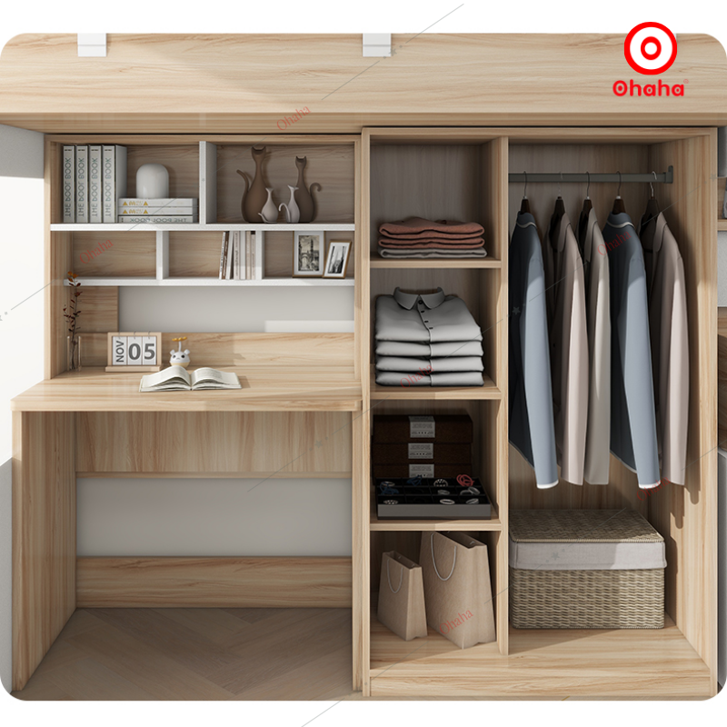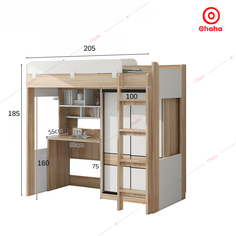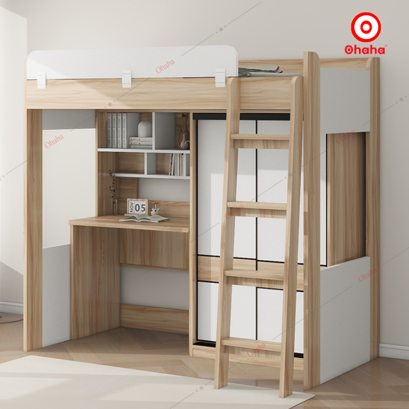 Giường tầng thông minh Ohaha kết hợp tủ áo và bàn học - GTTM048 được thiết kế tiện dụng, tiết kiệm diện tích và chắc chắn, an toàn cho cả người lớn và trẻ nhỏ khi nằm. Đây là sự lựa chọn ưu việt cho không gian nội thất phòng ngủ nhỏ hẹp. Mẫu sản phẩm đầy đủ tiện nghi với nhiều không gian lưu trữ đồ đạc: tủ quần áo, bàn học ,..