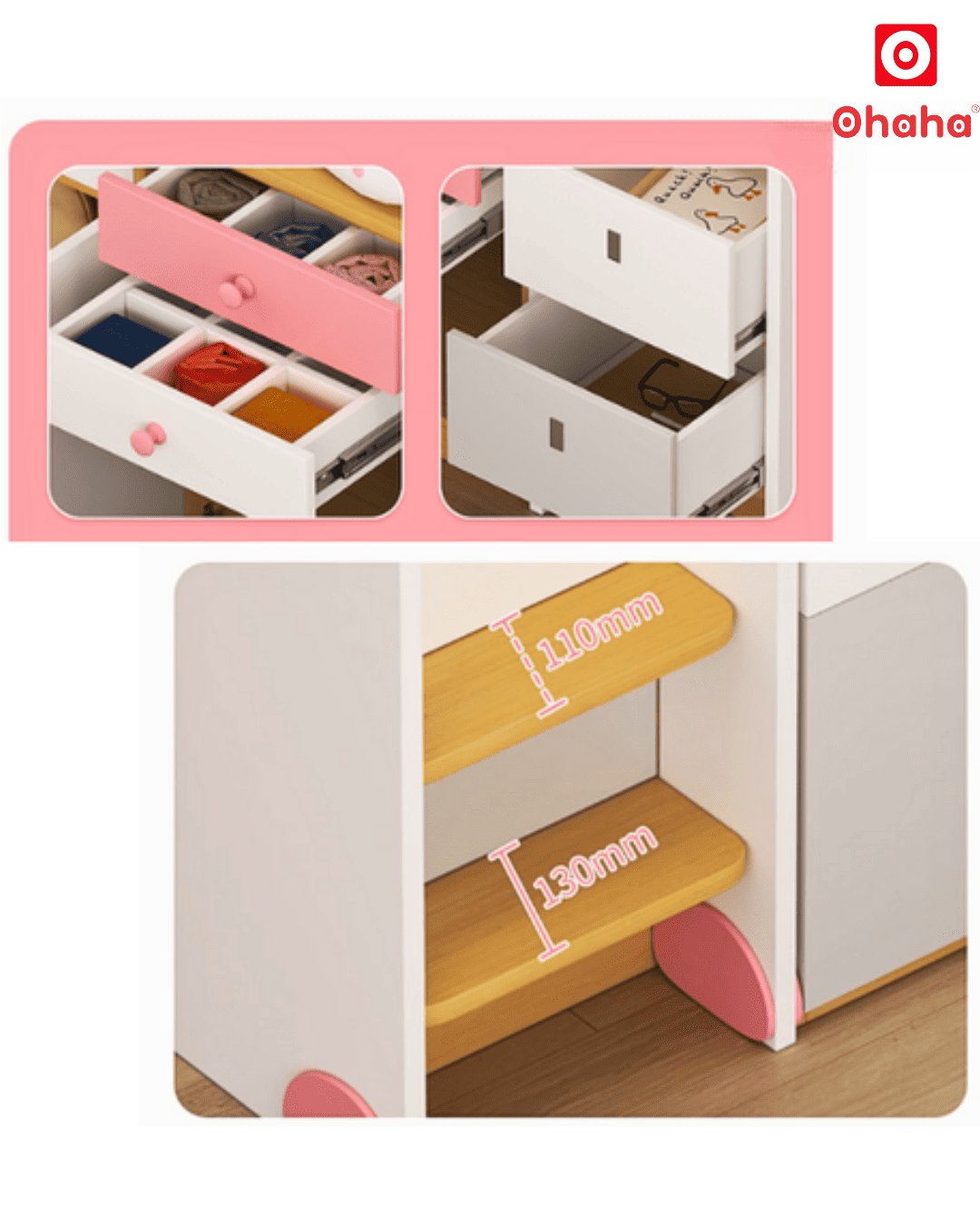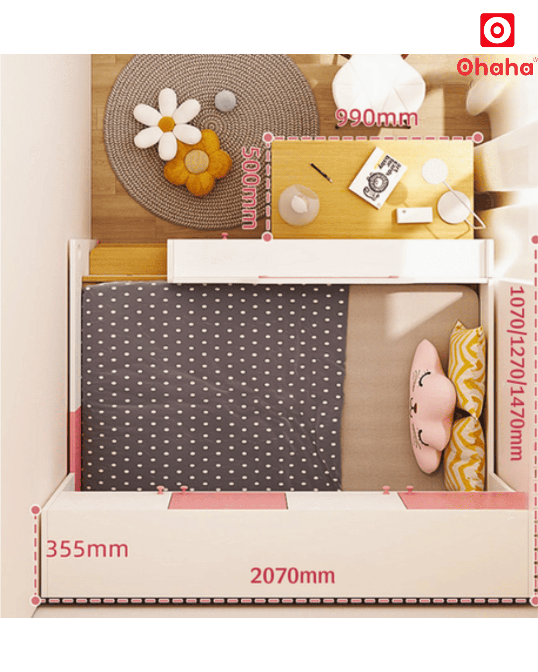 Giường tầng thông minh xếp gọn Ohaha - GTXG010 còn được thiết kế bàn học gắn bánh xe linh hoạt, giúp bé có một nơi học tập thuận tiện và tối ưu hóa không gian. Bé có thể dễ dàng kéo bàn ra và đẩy vào sau khi sử dụng. Đồng thời, sản phẩm còn được tích hợp cả tủ và kệ để chứa sách và đồ dùng học tập, giúp bé duy trì không gian gọn gàng và ngăn nắp.