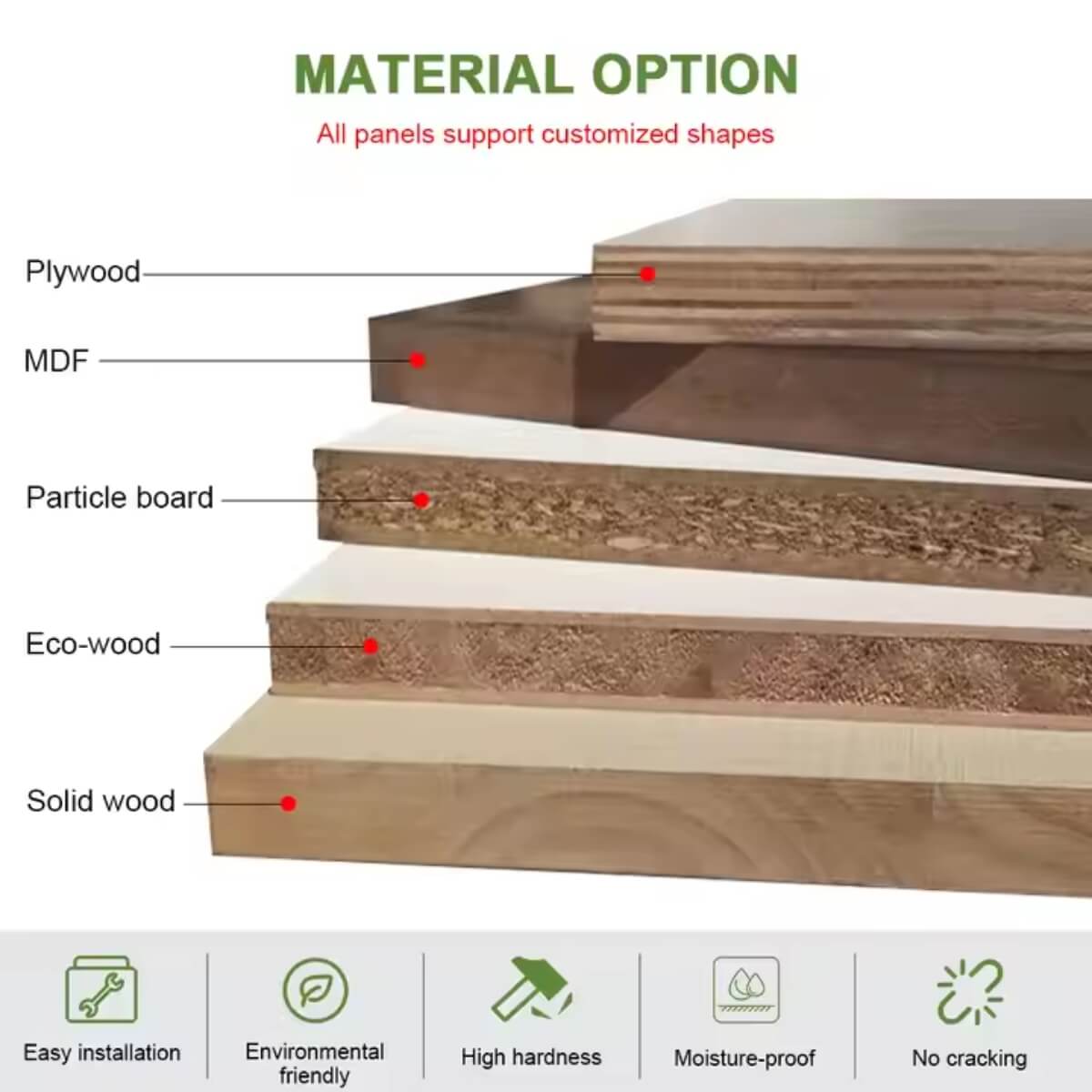 | Chất liệu: | MDF thường/ MDF chống ẩm/ Acrylic/ Gỗ nhựa Pima |
