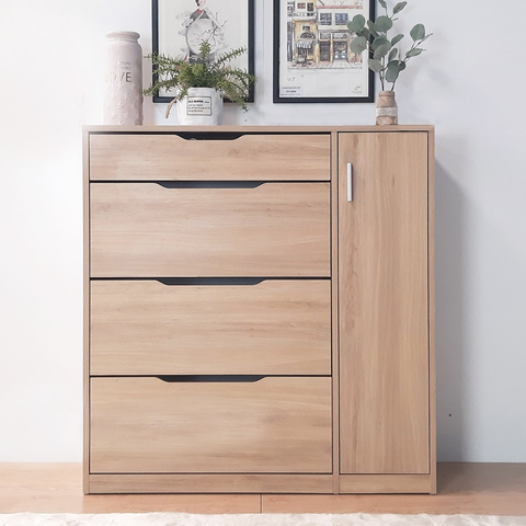 Tủ giày Ohaha nhiều ngăn tiện dụng - TG008 làm bằng gỗ MDF cao cấp lõi xanh đạt tiêu chuẩn được phủ Melamine, giúp sản phẩm không chỉ đẹp hơn về mỹ quan mà còn mang lại độ bền chắc lâu dài. Bề mặt được phủ bóng chống hút ẩm, dễ lau chùi và hạn chế trầy xước, độ chịu nhiệt, chịu nước cao. Sản phẩm qua xử lý chống cong vênh, mối mọt bằng công nghệ của Đức, thân thiện và an toàn cho sức khỏe gia đình và môi trường.