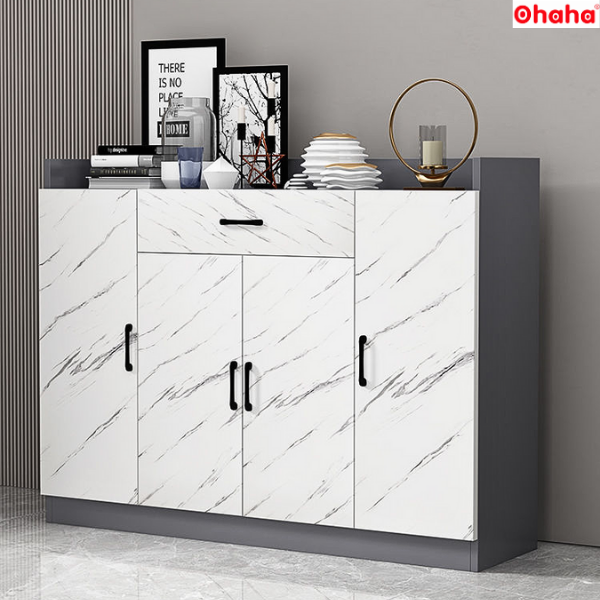 Tủ giày thông minh cao cấp vân đá - TGCC008 sử dụng ván gỗ công nghiệp tiêu chuẩn MDF lõi xanh phủ Melamine thân thiện, an toàn với người dùng. Các màu sắc kết hợp tinh tế, chi tiết viền cong mềm mại tạo nên sự sang trọng, đẳng cấp riêng.