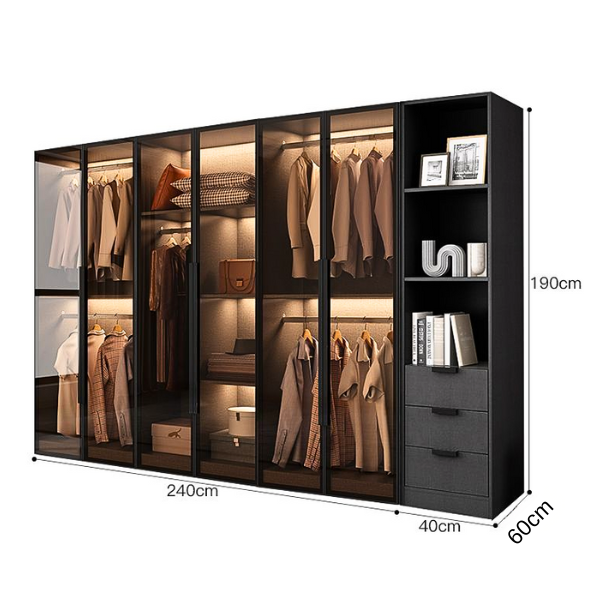 Tủ quần áo cánh kính là một lựa chọn tuyệt vời để tăng thêm tính thẩm mỹ cho căn phòng của bạn. Với thiết kế khung nhôm đẹp mắt, tủ quần áo này mang đến một phong cách hiện đại và sang trọng. Cánh kính trong suốt cho phép ánh sáng tự nhiên đi vào tủ, giúp phòng trở nên sáng sủa và rộng rãi hơn.