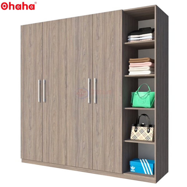 Tủ quần áo gỗ công nghiệp 4 cánh cao cấp Ohaha - TQA047 là loại tủ được thiết kế phù hợp với những căn phòng chật hẹp hay muốn tiết kiệm không gian. Nguyên liệu được làm từ gỗ công nghiệp MDF lõi xanh được phủ Melamine 2 mặt chống thấm đạt tiêu chuẩn chất lượng xuất khẩu, giúp sản phẩm không chỉ đẹp hơn về mỹ quan mà còn mang lại độ bền chắc lâu dài.