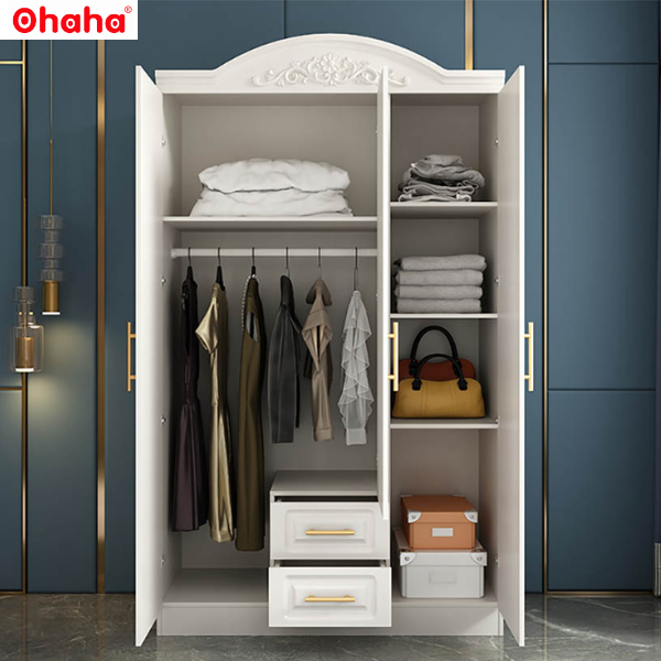 Bạn có thể lựa chọn tủ quần áo gỗ công nghiệp hiện đại Ohaha cửa mở hoặc tủ quần áo gỗ công nghiệp nhiều cánh với khối tủ nhiều ngăn kéo và khoang để lưu trữ quần áo và các vật dụng cá nhân khác. Thiết kế thông minh của tủ quần áo gỗ công nghiệp ohaha còn cho phép tùy chỉnh theo ý muốn để phù hợp với nhu cầu sử dụng của mọi gia đình.